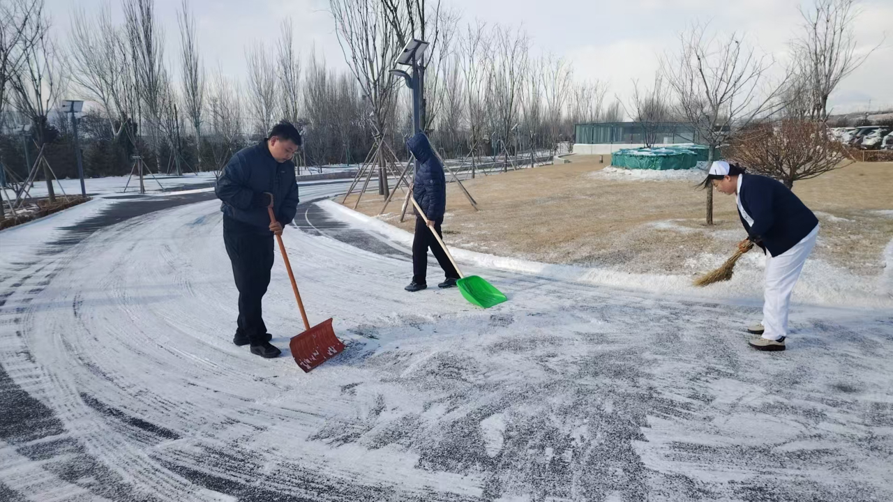 2025年12月13日,怀来地区迎来降雪天气,纷纷扬扬的雪花为城市披上银装,却也给天保京北健康城——这所聚焦医康养服务、承载着长者日常起居的养老项目带来了通行挑战。作为天保集团深耕养老领域的青年力量阵地,怀来天保团支部第一时间响应共青团河北省委“扫雪除冰青年志愿服务”倡议及省市团委部署要求,迅速集结全体团员,以“保安全、护出行、暖人心”为目标,开展“扫雪护行・情暖银龄”专项志愿服务活动,用青春力量为长者筑起冬日安全屏障,让团徽在风雪中闪耀担当。